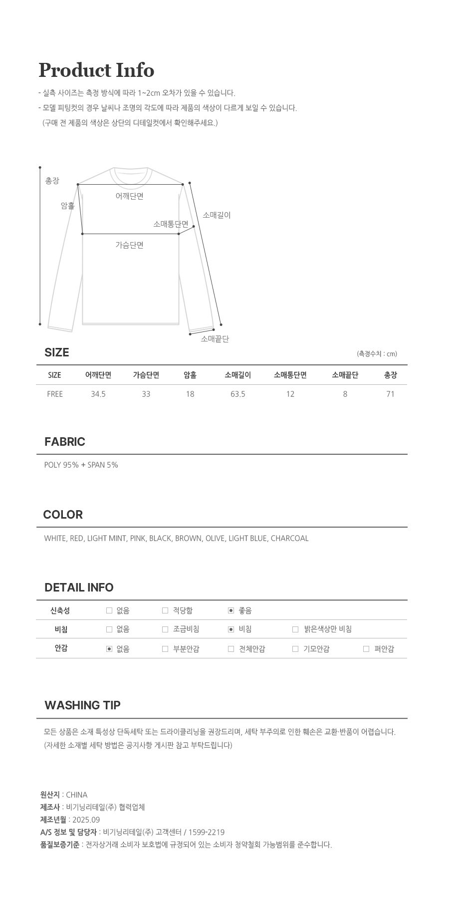 · 衣物第一次清洗建议干洗,若无洗标之商品请询问专业洗衣店,并建议清洗后再穿。