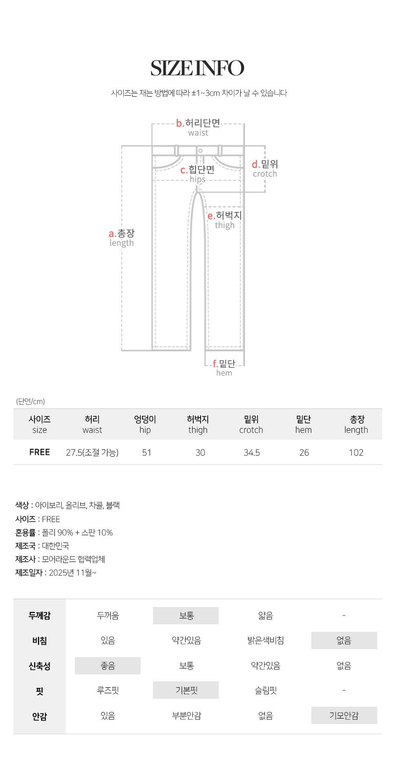 | 尺寸 | 腰 | 臀围 | 裤裆 | 裤长 | 下摆 | 全长 |