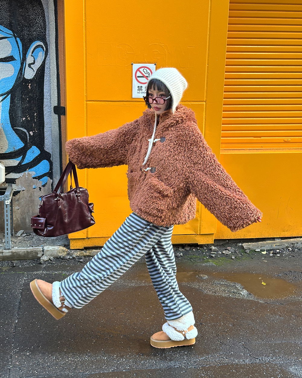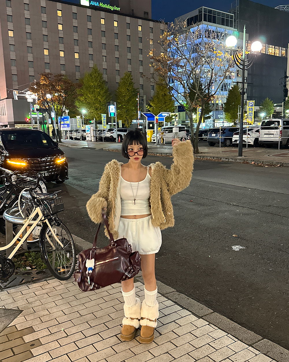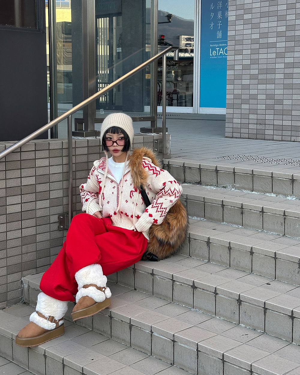 Cowhide full-heel fur trimmed ugg boots 靴子